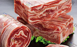 脊椎骨(7-11肋)兩側部位肉,部位肉酮體占3.6%,表面去風干肉、淤血肉及軟硬骨,保留自然脂肪,肉質紅白相間,呈大理石花斑紋狀,肉質細嫩,脂肪含量較高,香甜多汁,不干澀。