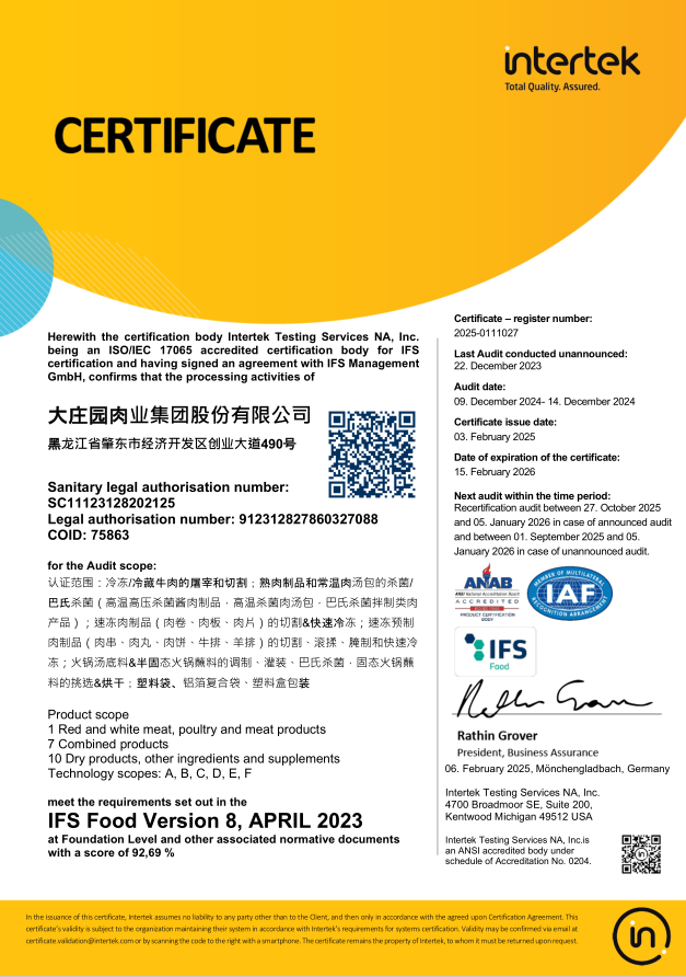 國(guó)際食品標(biāo)準(zhǔn)(IFS)認(rèn)證